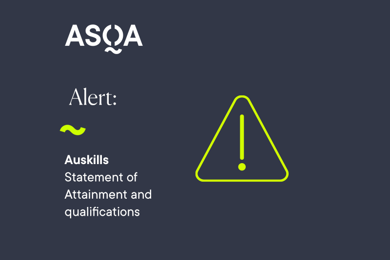 ASQA considers that any statements of attainment or qualification purportedly issued by Auskills Training are bogus and will not be recognised as certification of VET training.